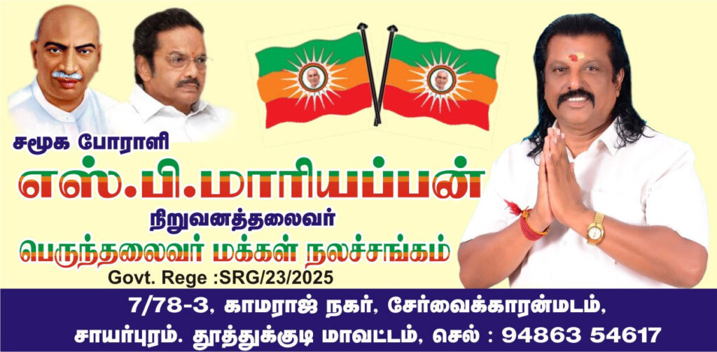 எஸ்.பி. மாரியப்பன் நாடார் அவர்கள் காமராஜர் லட்சிய பேரவை நடத்தும் மாபெரும் பொதுக்கூட்டத்தில் பங்கேற்க உள்ளார். காமராஜர் லட்சிய பேரவை சார்பில் நடைபெறவுள்ள மாபெரும் பொதுக்கூட்டம் விரைவில் நடைபெற உள்ளது.…