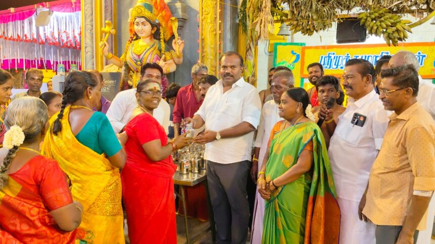 கோவில் தலைவரும் தர்மகர்த்தாவுமான கோட்டுராஜா, பொதுச்செயலாளர் சுப்பிரமணியன், செயலாளர்கள செல்வராஜ், பொன்ராஜ், மாாி செல்வ ஈஸ்வரன், துணைத்தலைவர்கள் பொன்ராஜ், தாமஸ், குமாரவேல், கண்ணன், துணைச்செயலாளர்கள் முருகேசன், கனகமாரியப்பன், சதிஷ்குமாா், மனோராஜ், ராஜசேகா், பொருளாளர் பழனிக்குமாா், மேற்கு மண்டல மாநகராட்சி தலைவர் அன்னலட்சுமி, திமுக பகுதி செயலளார் சுரேஷ்குமாா், வட்டச்செயலாளர் ரவீந்திரன், போல்பேட்டை பகுதி பிரதிநிதி பிரபாகா் உள்பட பலா் கலந்து கொண்டனா்.