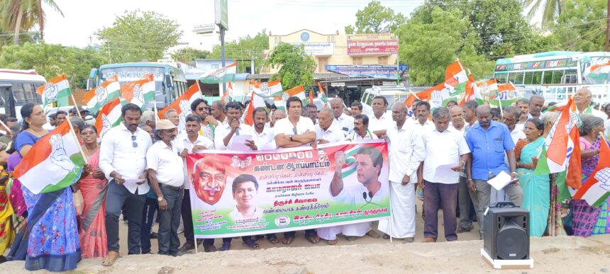 பெருந்தலைவர் காமராஜரை இழிவுபடுத்தி பேசிய திமுக எம்பி திருச்சி சிவாவை கண்டித்து தூத்துக்குடி மாவட்ட காங்கிரஸ் சார்பில் தூத்துக்குடி சிதம்பர நகர் பஸ் ஸ்டாப் அருகில் மாபெரும் கண்டன ஆர்ப்பாட்டம் நடைபெற்றது. இந்த கண்டன ஆர்ப்பாட்டத்தில் தமிழ்நாடு மாநில ஐஎன்டியூசி பொதுச் செயலாளர், காங்கிரஸ் கட்சி மாநில பொது குழு உறுப்பினர், முன்னாள் இளைஞர் காங்கிரஸ் தலைவர் க.பெருமாள்சாமி தலைமையிலும் அகில இந்திய ஒர்க்கர்ஸ் கமிட்டி தூத்துக்குடி மாவட்ட தலைவர் ஜெயக்கொடி மற்றும் சாத்தான்குளம் முன்னாள் வட்டார தலைவர் ஜனார்த்தனன் வடக்கு மாவட்ட விவசாய பிரிவு தலைவர் பேரையா மீனவர் அணி மிக்கேல் குரூஸ் மாவட்ட பொது செயலாளர் இக்னேஷியஸ், FCI INTUC தலைவர் வீரையா, மாநில பேச்சாளர் பார்த்திபன் தெற்கு மண்டல தலைவர் தங்கராஜ் ஆகியோர் முன்னிலையிலும் நடைபெற்றது. இந்த ஆர்ப்பாட்டத்தின் போது திருச்சி சிவாவை கண்டித்து கோஷங்கள் எழுப்பப்பட்டன. காமராஜரை இழிவாக பேசிய திருச்சி சிவா மன்னிப்பு கேட்க வேண்டும் என்று கண்டன ஆர்ப்பாட்டம் நடைபெற்றது. இந்த ஆர்ப்பாட்டத்தின் போது ஆராய்ச்சி துறை ஆடிட்டர் சிவராஜ் மோகன், எஸ்சி எஸ்டி பிரிவு முன்னாள் மாவட்ட தலைவர் ராஜாராம், ஊடகப் பிரிவு சுந்தர்ராஜ், ஆத்தூர் ராம்குமார், சம்சுதீன் , வடக்கு மாவட்ட ஊடகத்துறை ஜேம்ஸ் லாரன்ஸ், ஓட்டப்பிடாரம் ஆராய்ச்சித்துறை ஹரி பாலகிருஷ்ணன், ஓட்டப்பிடாரம் அமைப்புசாரா தொழிலாளர் நலத்துறை ராமர், புதியம்புத்தூர் நகர நகர செயலாளர் சின்னச்சாமி, புதியம்புத்தூர் நகரத் தலைவர் துரைமணி, வழக்கறிஞர் செல்வம், செல்வ முருகன், அல்போன்ஸ், சேகர், ஜான்வெஸ்லி வாசிராஜன் சுரேஷ்குமார், சேவியர் மிஷியர், மனுவேல், முருகேசன், கன்னிச்சாமி பாண்டியன், ரூஸ்வெல்ட், பிரைன் நாத், ஒர்க்கர்ஸ் கமிட்டி மாவட்ட தலைவி உமா மகேஸ்வரி மாவட்ட செயலாளர் தனலட்சுமி இருவர் தலைமையில் நூற்றுக்கும் மேற்பட்ட மகிளா காங்கிரஸ் சார்ந்தவர்கள் கலந்து கொண்டனர் மற்றும் INTUC சார்ந்த சிவலிங்கம் சாரதி முத்து ரமேஷ் பாலன் கிரிதரன் மற்றும் 300-க்கும் மேற்பட்ட தேசிய தோழர்கள் கலந்து கொண்டனர் நன்றி உரை ஒர்க்கர்ஸ் கமிட்டியை சார்ந்த அசன் அவர்கள் உரையாற்றினார்.
