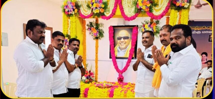 தூத்துக்குடியில் கலைஞர் படத்திற்கு திமுக ஒன்றிய செயலாளர் சரவணகுமார் மரியாதை!!