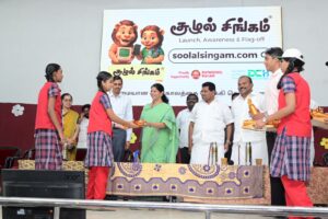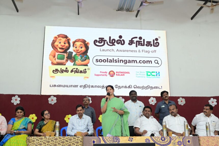 தூத்துக்குடி மாவட்டத்தில் இளம் தொழில் முதலீட்டாளர்களை ஊக்குவிக்கும் நோக்கில், திமுக துணைப் பொதுச் செயலாளரும், நாடாளுமன்றக் குழுத் தலைவருமான கனிமொழி கருணாநிதி முன்னெடுப்பில் “புத்தொழில் களம்” என்ற நிகழ்ச்சி நடத்தப்பட்டது. அந்த நிகழ்ச்சியில் தேர்வு செய்யப்பட்ட குழுவினர், தற்போது தூத்துக்குடி மாவட்டத்தில் வரக்கூடிய மின்னணு கழிவுகளை சேகரித்து, அவற்றை மறுசுழற்சி செய்யும் வகையில் “சூழல் சிங்கம்” என்ற அமைப்பை நிறுவியுள்ளனர். இதன் தொடக்க நிகழ்ச்சி இன்று (03/09/2025) தூத்துக்குடியில் உள்ள சுப்பையா வித்யாலய பெண்கள் மேல்நிலைப் பள்ளியில் நடைபெற்றது.