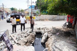 தூத்துக்குடி சந்தை ரோடு அண்ணாநகா் பகுதியில் நடைபெறும் வடிகால் பணிகளை மேயா் ஜெகன் பொியசாமி ஆய்வு!!!