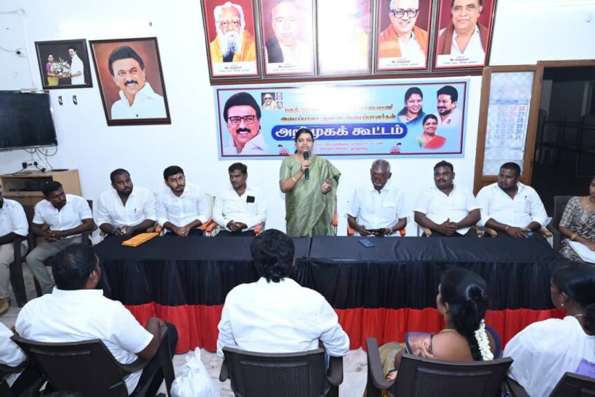 தூத்துக்குடி வடக்கு மாவட்ட திமுக மாணவரணி ஓன்றிய பேரூர் ஊராட்சி புதிய பொறுப்பாளர்கள் அறிமுக கூட்டம் எட்டையாபுரம் சாலையில் உள்ள கலைஞர் அரங்கில் வடக்கு மாவட்ட திமுக செயலாளரும் சமூகநலன் மற்றும் மகளிா் உாிமைத்துறை அமைச்சா் கீதாஜீவன் தலைமையில் நடைபெற்றது. மாநகர திமுக செயலாளா் ஆனந்தசேகரன், முன்னிலை வகித்தாா். மாவட்ட மாணவரணி அமைப்பாளர் வக்கீல் சீனிவாசன், வரவேற்புரையாற்றினாா். அமைச்சர் கீதாஜீவன் பேசுகையில் திமுக ஆரம்பிக்கப்பட்ட வரலாறுகளையும் தொடா்ந்து சந்தித்த இடா்பாடுகள் இடையூறுகள் எல்லாம் கடந்து ஆதிக்க சக்திகளை எதிர்த்து தமிழ்நாட்டிற்கு கிடைத்த அரசியல் கட்சிகளின் திமுகவின் வரலாறு 76ம் ஆண்டு தொடக்கத்தில் செயல்பட்டு வருகிறது. 5 முறை கலைஞர் முதலமைச்சராக பொறுப்பேற்று தமிழக வளா்ச்சிக்கும் தேசிய அளவிலான அரசியலிலும் தடம் பதித்து வாழ்ந்து மறைந்தாா். அவரது வழியில் அந்த கொள்கைகளை பின்பற்றி திமுக தலைவரும் தமிழக முதலமைச்சருமான மு.க.ஸ்டாலின் பொறுப்பேற்ற பின் அனைத்து தோ்தல்களிலும் வெற்றி வாகை சூடி 6வது முறையாக திமுக ஆட்சி அமைத்து எல்லோருக்கும் எல்லாம் என்ற திராவிட மாடல் ஆட்சி தமிழக மக்களுக்கும் தமிழ் மொழிக்கும் பாதுகாப்பு அரணாக இருந்து வருகிறது. இங்கு இருக்கின்ற மாணவா்கள் ஓவ்வொருவரும் திமுக செய்துள்ள சாதனைகளை முழுமையாக தொிந்து கொண்டு தாங்கள் குடியிருக்கும் பகுதியில் ஒவ்வொருவரும் 50 வாக்குகளை திமுகவிற்கு கொண்டு சோ்க்கும் பணியை இப்போதிலிருந்து தொடங்க வேண்டும். 2026 தோ்தல் தமிகழத்தில் நடைபெறவுள்ள நிலையில் வடக்கு மாவட்டத்தில் உள்ள தூத்துக்குடி கோவில்பட்டி விளாத்திகுளம் ஆகிய தொகுதிகளிலும் அதிகமான வாக்கு வித்தியாசத்தில் வெற்றி பெற்றது. என்ற வரலாற்று சாதனை எழுதுவதற்கு மாணவரணியின் பங்கு அதிகம் இருக்க வேண்டும் பலா் புதிய வாக்காளா் பட்டியிலில் இணைந்தவா்களாக இருப்பிா்கள் புதிய வாக்காளா் சோ்ப்பின்போது 18 வயது நிரம்பியவா்களை அந்த பட்டியலில் இடம் பெற செய்ய வேண்டும் இன்றைய தலைமுறையினா் தான் நாளைய தலைவா்களாக உருவாகுவாா்கள் அதற்கேற்றாற்போல் அனைவரும் ஓற்றுமையுடன் பணியாற்றி திமுக 7வது முறையாக ஆட்சி அமைத்தது. என்று பெருமை கொள்ளும் வகையில் பணியாற்ற வேண்டும். என்று பேசினாா். கூட்டத்தில் மாவட்ட மாணவரணி துணை அமைப்பாளர்கள் கோகுல்நாத், ஆகாஸ்பாண்டியன், கனகவா, பிரதீபா, மாநகர மாணவரணி துணை அமைப்பாளர்கள் சத்யா, காா்த்தி, மாநகர அணி துணை அமைப்பாளர் ரவி, மற்றும் மணி அல்பட், ஒன்றிய பேரூா் நகர மாநகர நிா்வாகிகள் உள்பட பலா் கலந்து கொண்டனா். மாநகர மாணவரணி அமைப்பாளர் டைகா் வினோத் நன்றியுரையாற்றினாா்.