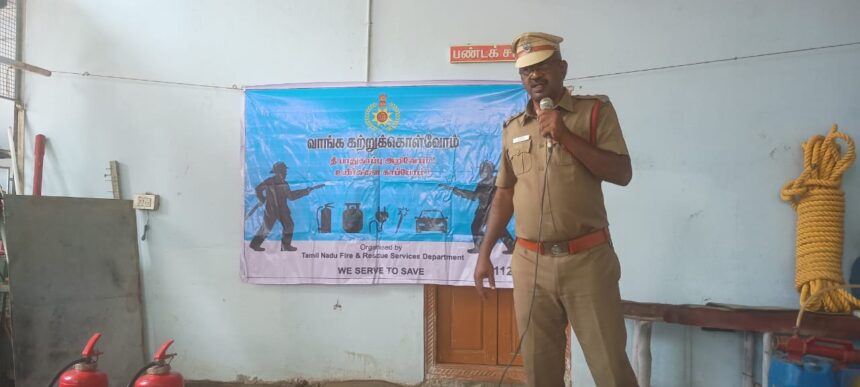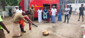 புகழூர் நகராட்சியில் தீ விபத்து தடுப்பு குறித்து விழிப்புணர்வு : நிலைய அலுவலர் சரவணன் தலைமையில் நடைபெற்றது.