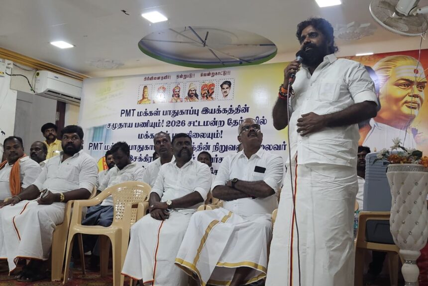 பிஎம்டி மக்கள் பாதுகாப்பு இயக்கத்தின் சமுதாய பணியும், 2026 சட்டமன்ற தேர்தலில் மக்களின் மனநிலையும் குறித்து மாநில தென்மண்டல, மாவட்ட நிர்வாகிகள் கலந்துரையாடல், அரசியல் கலந்தாய்வு திருநெல்வேலியில் தனியார் மஹாலில் வைத்து நடைபெற்றது.
