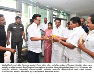 அதனை தொடர்ந்து, சபாநாயகர் அப்பாவு, தூத்துக்குடி எம்பி கனிமொழி, மாவட்ட ஆட்சித் தலைவர் இளம்பகவத் காவல் கண்காணிப்பாளர் அல்பர்ட்ஜான், ஆணையர் ப்ரியங்கா, அமைச்சர்கள் நேரு, ராமச்சந்திரன், மனோ தங்கராஜ், தங்கம் தென்னரசு, ராஜகண்ணப்பன், எம்.பி. வில்சன், எம்எல்ஏக்கள் மார்க்கண்டேயன், சண்முகையா, ரூபி மனோகரன், ராஜா, தமிழரசி, அப்துல் வஹாப், தூத்துக்குடி மேயர் ஜெகன்பெரியசாமி, திருநெல்வேலி மேயர் கிட்டு என்ற ராமகிருஷ்ணன், மாவட்ட செயலாளர் ஆவுடையப்பன், ஆகியோர் வரவேற்றனர்.