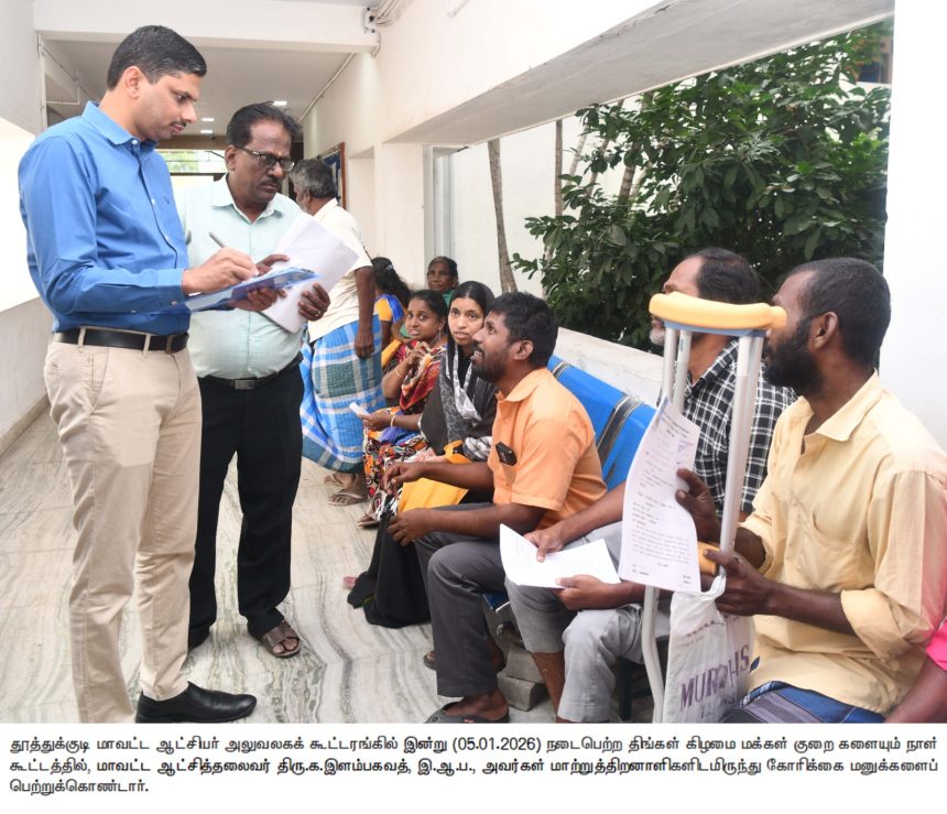 தூத்துக்குடி கலெக்டா் அலுவலகக் கூட்டரங்கில் கலெக்டா் இளம்பகவத் தலைமையில் திங்கள்கிழமை மக்கள் குறைகளையும் நாள் கூட்டம் நடைபெற்றது.