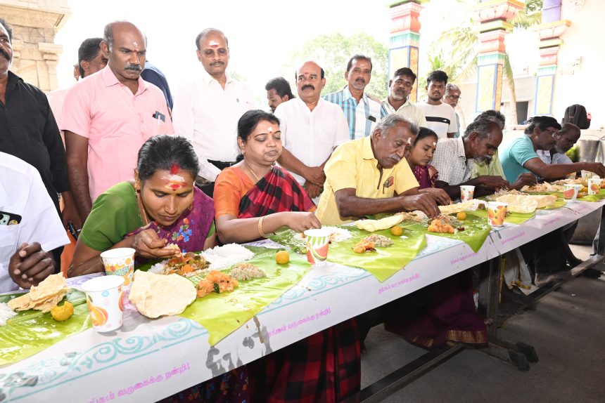 தூத்துக்குடி தமிழக முன்னாள் முதலமைச்சர் அண்ணாவின் 57வது நினைவுநாளை முன்னிட்டு பாகம்பிாியாள் உடனுறை சங்கர ராமேஸ்வரா் திருக்கோவிலில் நடைபெற்ற சமபந்தி அன்னதானத்தை வடக்கு மாவட்ட திமுக செயலாளரும் சமூகநலன் மற்றும் மகளிர் உாிமைத்துறை அமைச்சர் கீதாஜீவன் தொடங்கி வைத்து உணவருந்தினாா்.