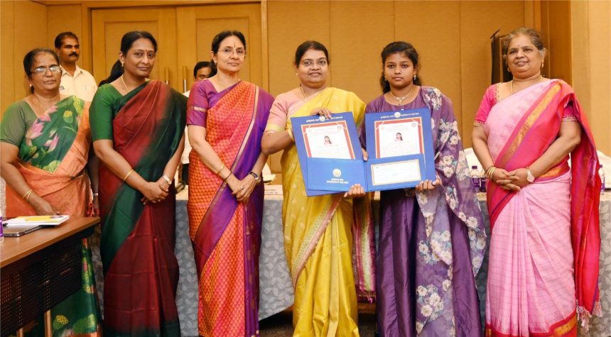2025– 2026ம் ஆண்டிற்கான தேசிய பெண் குழந்தை தின மாநில அரசு விருது– திருநெல்வேலி மாணவி சூடாமணிக்கு அமைச்சா் கீதாஜீவன் வழங்கினாா்.