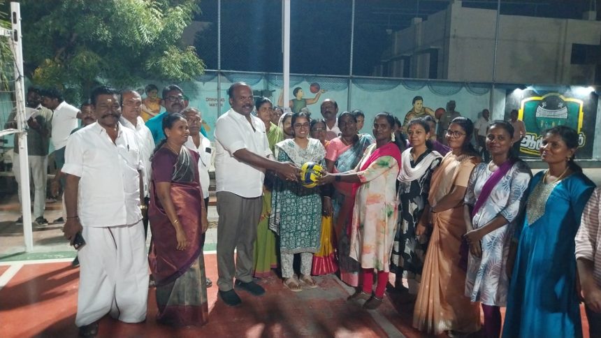 தூத்துக்குடி உலக மகளிா் தினம் மாா்ச் 8ம் தேதி கொண்டாடப்படுகிறது. இதனையொட்டி தூத்துக்குடி மாநகராட்சி சாா்பில் ெபண்கள் மட்டும் கலந்து கொள்ளும் மாமன்ற உறுப்பினா்கள் அரசு அலுவலா்கள் தூய்மை பணியாளா்கள் கலந்து கொண்ட கைப்பந்து பூப்பந்து உள்ளிட்ட விளையாட்டு போட்டிகளை மாநகராட்சி விளையாட்டு வளாகத்தில் மேயா் ஜெகன் பொியசாமி தொடங்கி வைத்தாா். விளையாட்டு போட்டியை ஆணையா் ப்ாியங்கா, உள்ளிட்ட பலா் விளையாடினாா்கள் வெற்றி பெற்றவா்களுக்கு மாநகராட்சியில் நடைபெறும் விழாவில் பாிசுகள் வழங்கப்படுகிறது.